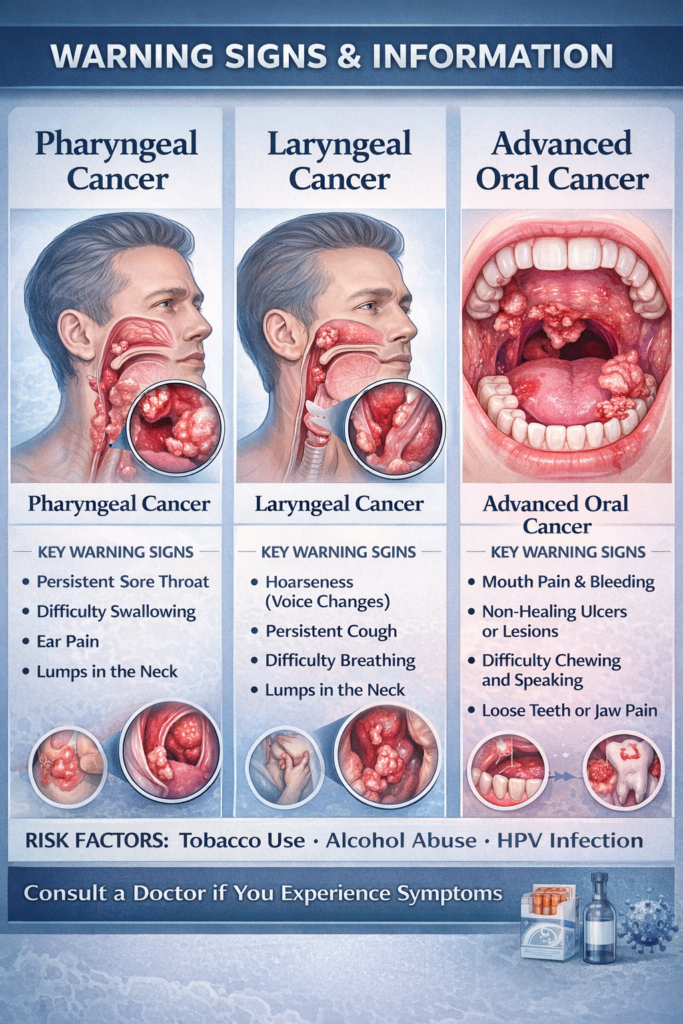 🔥 สิ่งสำคัญคือการสังเกต “อาการร่วม” ที่อาจเป็นสัญญาณเตือน🔥 เช่น กลืนลำบาก เสียงแหบเรื้อรัง มีก้อนที่คอ น้ำหนักลดโดยไม่ทราบสาเหตุ หรือปวดหูข้างเดียว โดยเฉพาะในผู้ที่มีปัจจัยเสี่ยง เช่น สูบบุหรี่ ดื่มแอลกอฮอล์ หรือมีประวัติ oral sex ที่เสี่ยงต่อการติดเชื้อ HPV