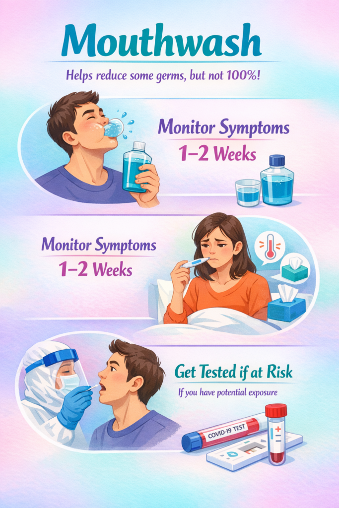 • บ้วนปาก (ช่วยลดเชื้อบางส่วน แต่ไม่ป้องกัน 100%)