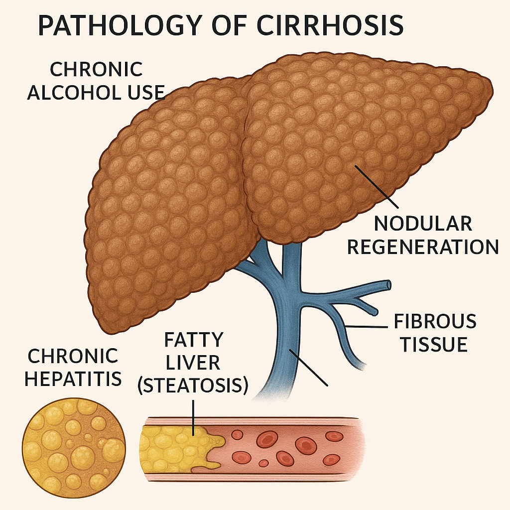 เมื่อมีการอักเสบเรื้อรังและการทำลายเซลล์ตับมากขึ้น จะนำไปสู่การเกิดพังผืดและโครงสร้างของตับเปลี่ยนไป ตับแข็งเป็นภาวะเสี่ยงต่อการเกิดมะเร็งตับอย่างมาก โดยประมาณ 80–90% ของผู้ป่วยมะเร็งตับมีภาวะตับแข็งร่วมด้วย
