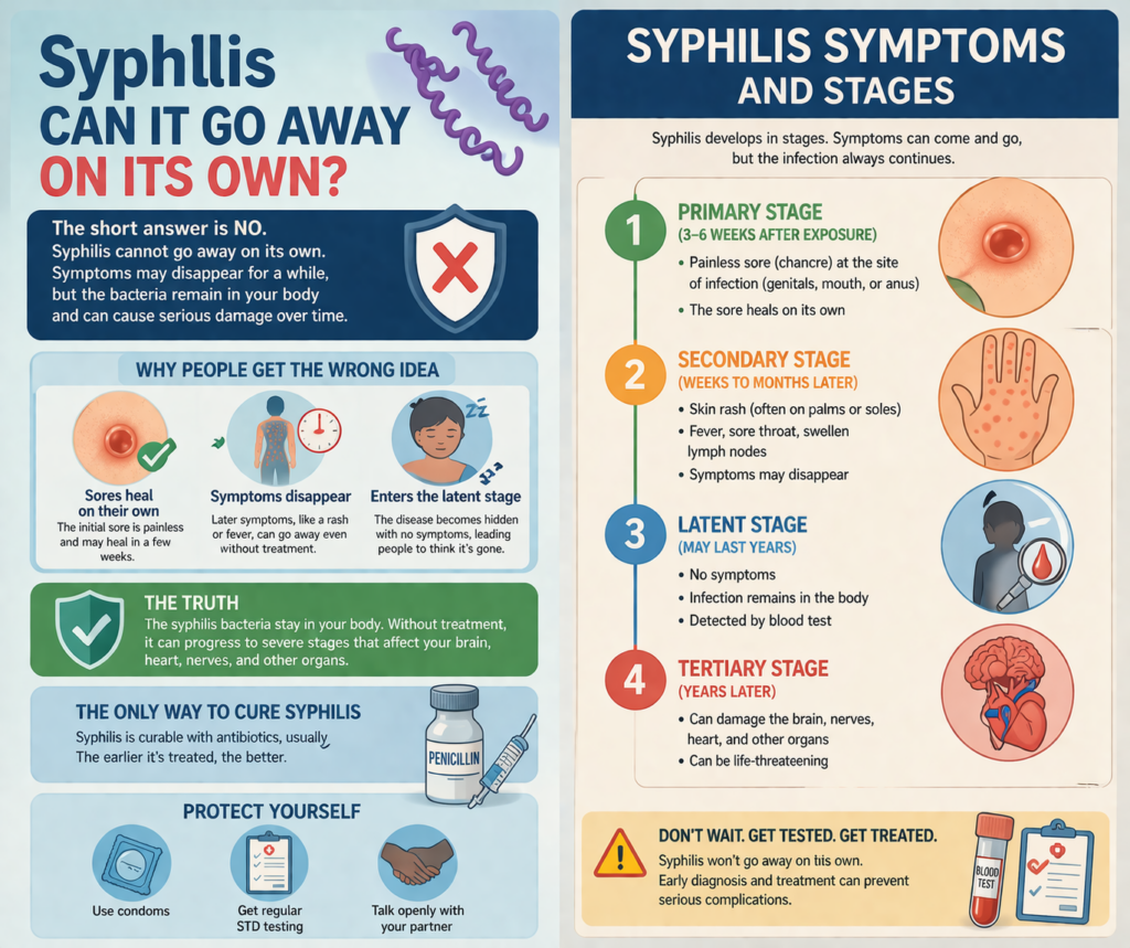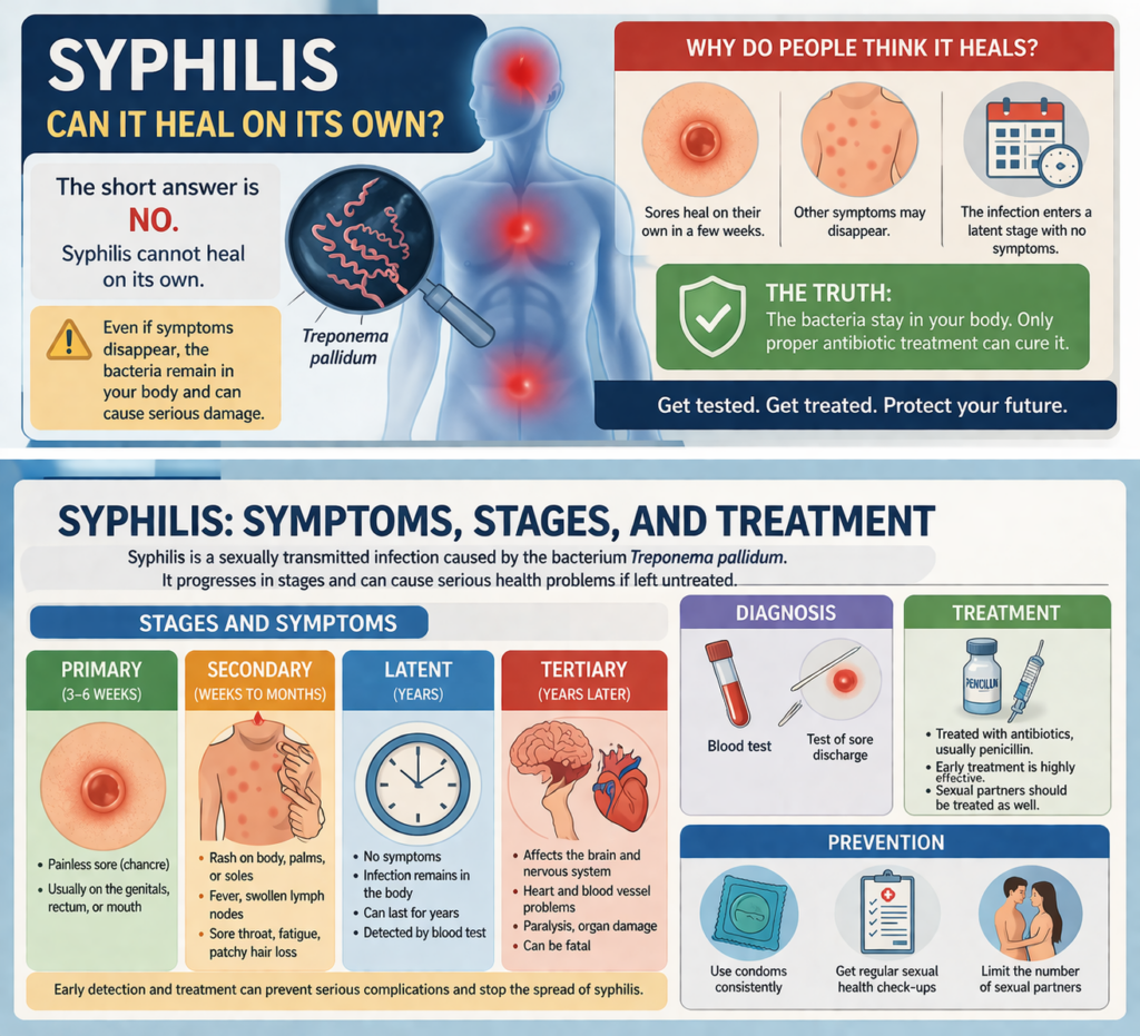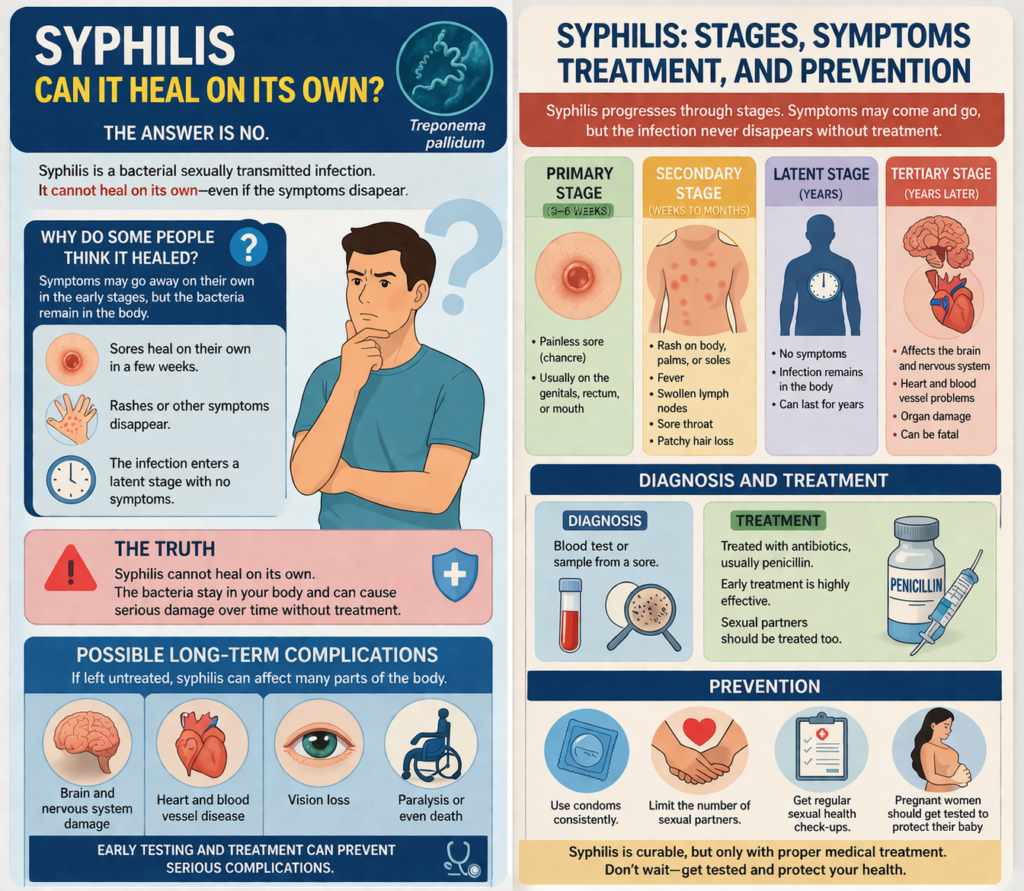 คำตอบชัดเจนคือ ซิฟิลิส “ไม่สามารถหายเองได้” เนื่องจาก